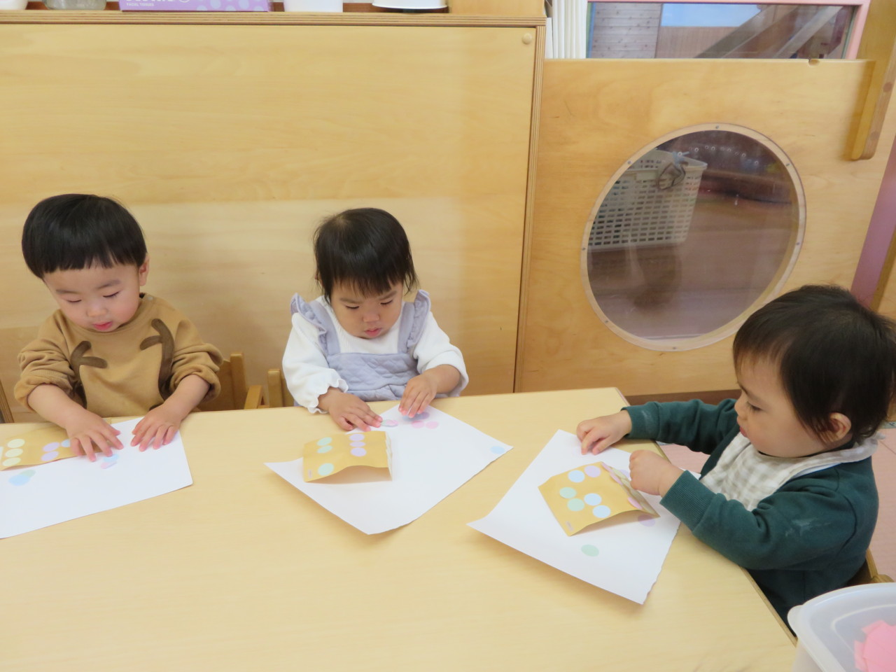 シールをぺったん!集中です。