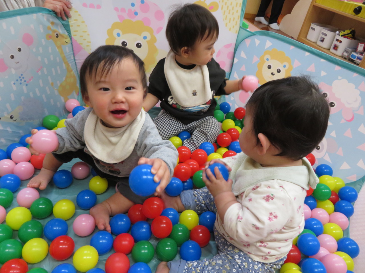 カラフルなボールに囲まれて楽しいな。